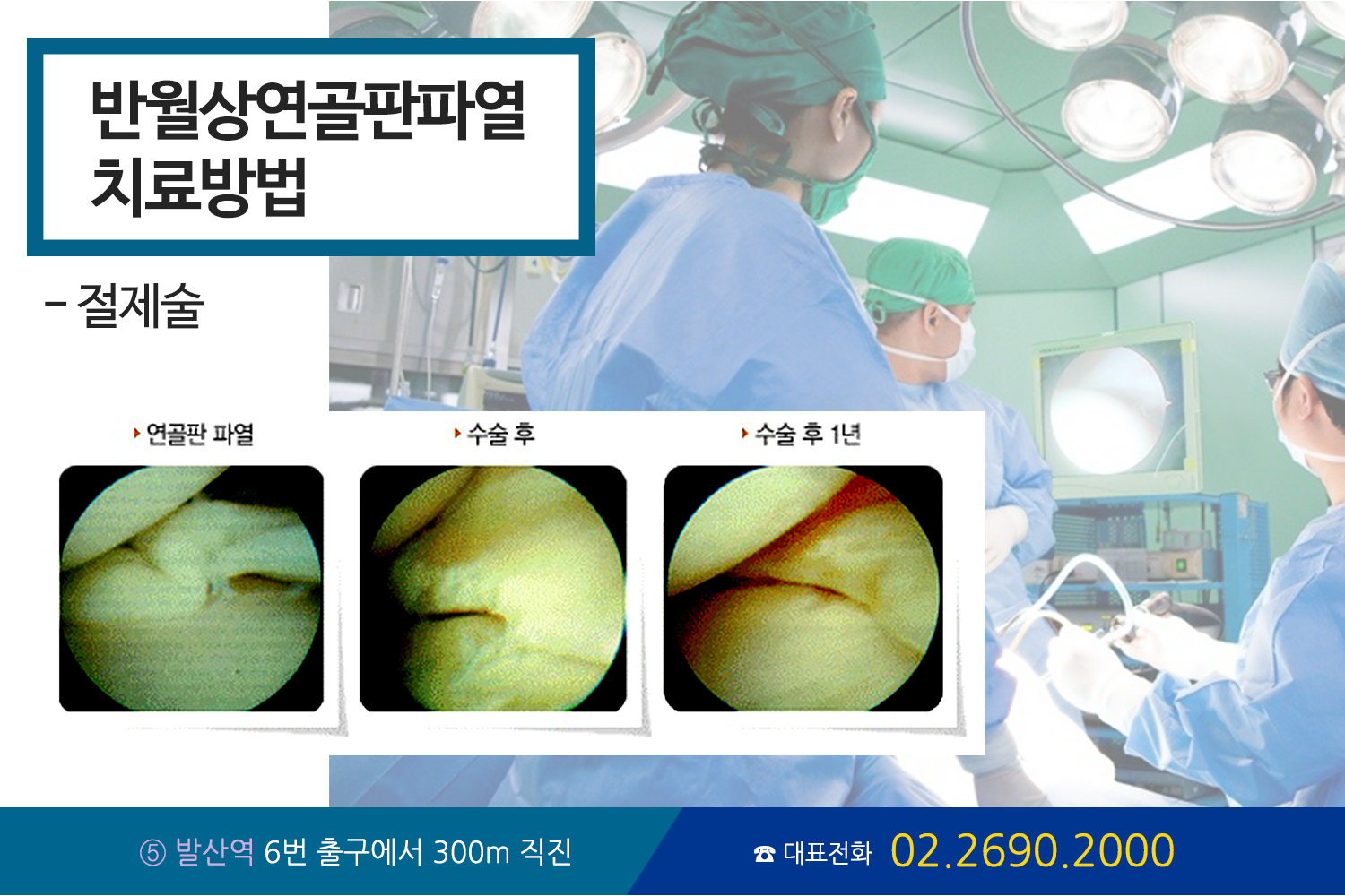 관절내시경 수술은 절개 부위가 작다 보니 감염 같은 수술 후유증이 일어날 소지가 줄어들고 수술 후의 통증도 적으며, 입원 기간 단축으로 비용도 줄일 수 있는 것이 가장 큰 장점인데요. 특히 흉터가 거의 남지 않는 점 때문에 미용적 측면에서 젊은 사람들이 많이 선호하는 치료방법입니다. 단, 연골이 완전히 닳아 없어진 경우에는 수술이 불가능하며, 이때는 인공관절로 대체하셔야 합니다.