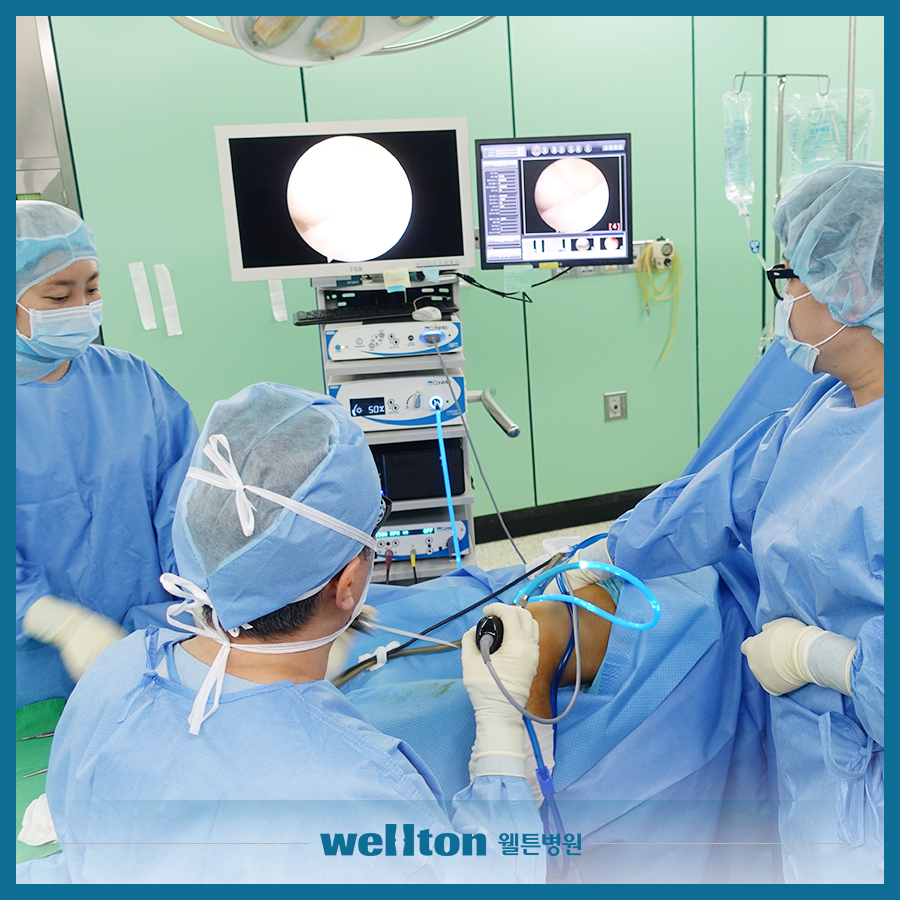 관절경 수술은 문제가 있는 관절 부위의 피부 1cm 미만을 절개하여, 작은 구멍 안에 관절내시경 카메라와 특수 장비 등을 넣어 관절안을 세세하게 모니터로 관절하며 문제가 있는 병변 부위를 치료해 주는 수술 방법입니다.