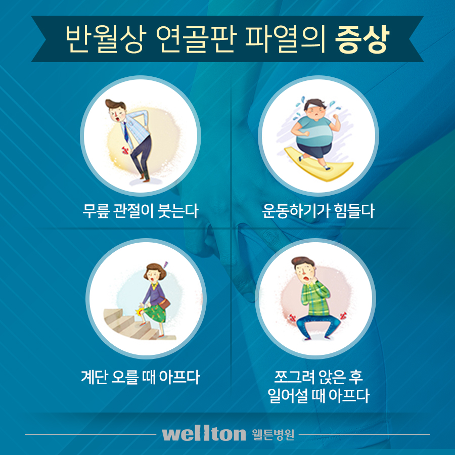 무릎의 퇴행성 과정에 의해서 또는 충격에 의해서 탄력이 떨어지게 되면 약하거나 강한 충격에서도 반월상연골판파열이 손상되기 쉽습니다. 반월상연골판의 손상은 나중에 퇴행성 관절염 질환으로 더 빨리 발전될 수 있기 때문에 증상 초기에 제대로 된 치료를 해주는 것이 좋습니다.